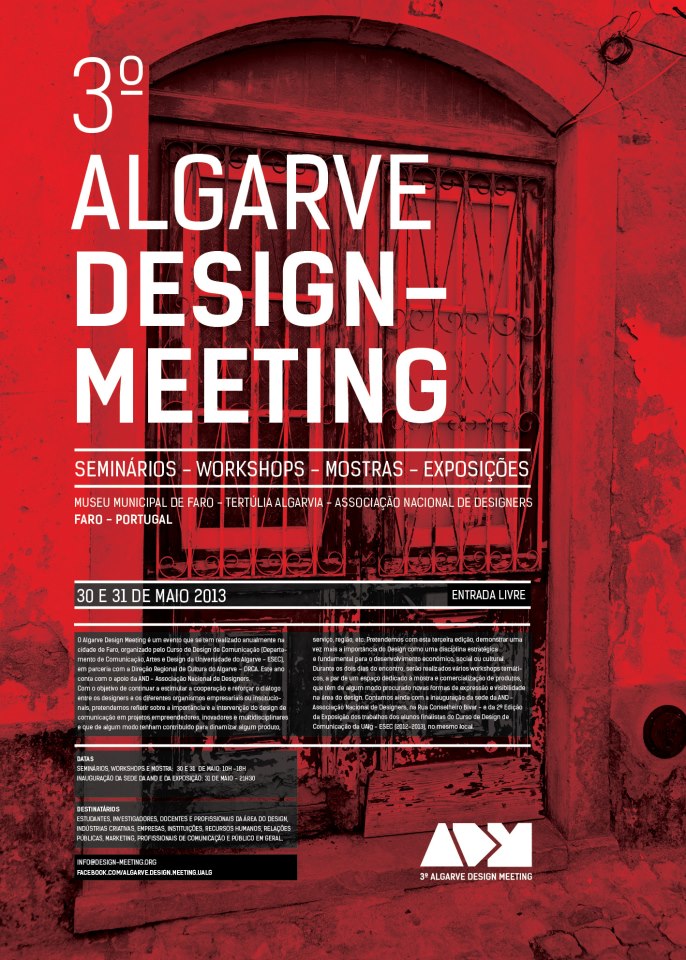 Contamos ainda com a inauguração da sede da AND - Associação Nacional de Designers, na Rua Conselheiro Bivar - e da 2ª Edição da Exposição dos trabalhos dos alunos finalistas do Curso de Design de Comunicação da UAlg-ESEC (2012-2013) no mesmo local.