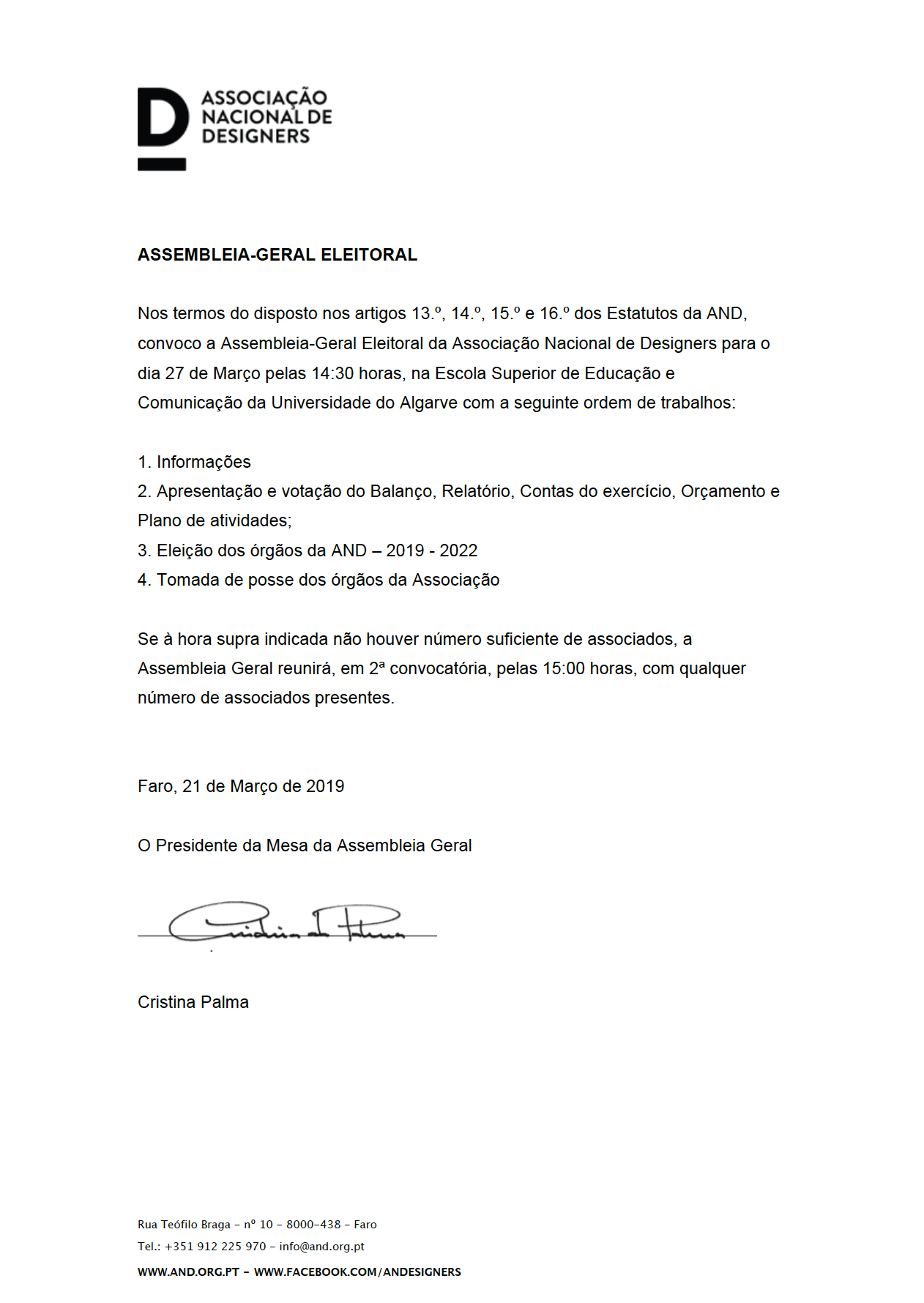 convoco a Assembleia-Geral Eleitoral da Associação Nacional de Designers para o
