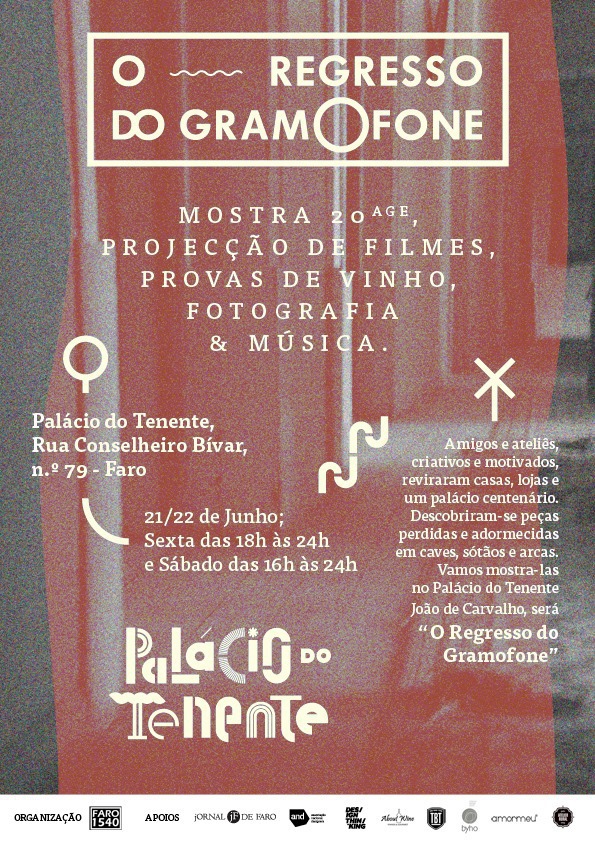 Durante dois dias as artes e os ofícios vão instalar-se num espaço que era apenas da memória. Será o “Regresso do Gramofone”, uma iniciativa de um grupo de amigos e ateliês, promovida pela Faro 1540. A Mostra de decoração Vintage terá como participantes o Atelier Rural, Byho- Interior Design Clinic, About Wine – Vinhos & Gourmet, Amormeu Acessórios, The Bike Type e Teresa Correia, criadora de "Era uma vez um Botão", e como parceiros a Associação Nacional de Designers e o Estúdio Design Thinking. O Palácio do Tenente está localizado na Rua Conselheiro Bívar nº 79, no centro de Faro.
