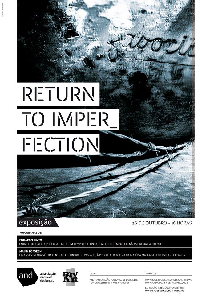Nesta exposição, patente até dia 7 de Dezembro no espaço da AND, na Rua Conselheiro Bivar nº 32, na Baixa de Faro, os autores apresentam ao público uma grande panóplia de imagens de fotografia analógica e de fotografia digital, a cores e a preto e branco, onde se destaca o passar do tempo, capturado através da lente, numa celebração à imperfeição.